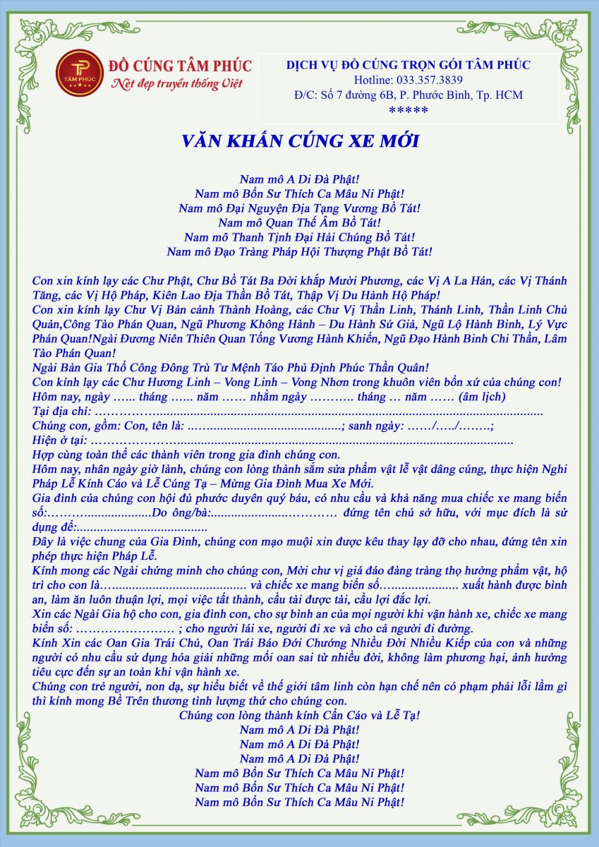 Bài văn cúng xe hàng tháng.